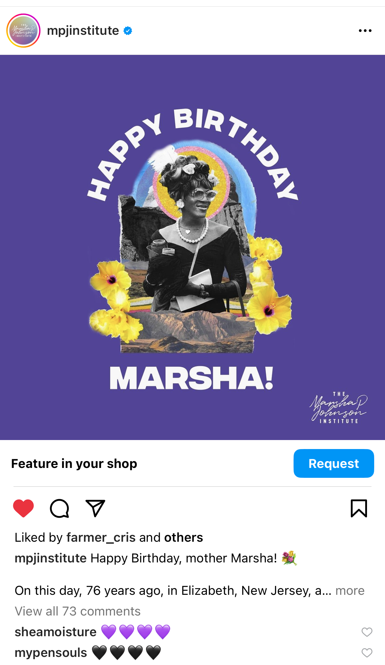 COLLAGE OF MARSHA P. JOHNSON ↳ COLLAGE ART Collage of Marsha P. Johnson that has been used across collateral for the Marsha P. Johnson Institute.